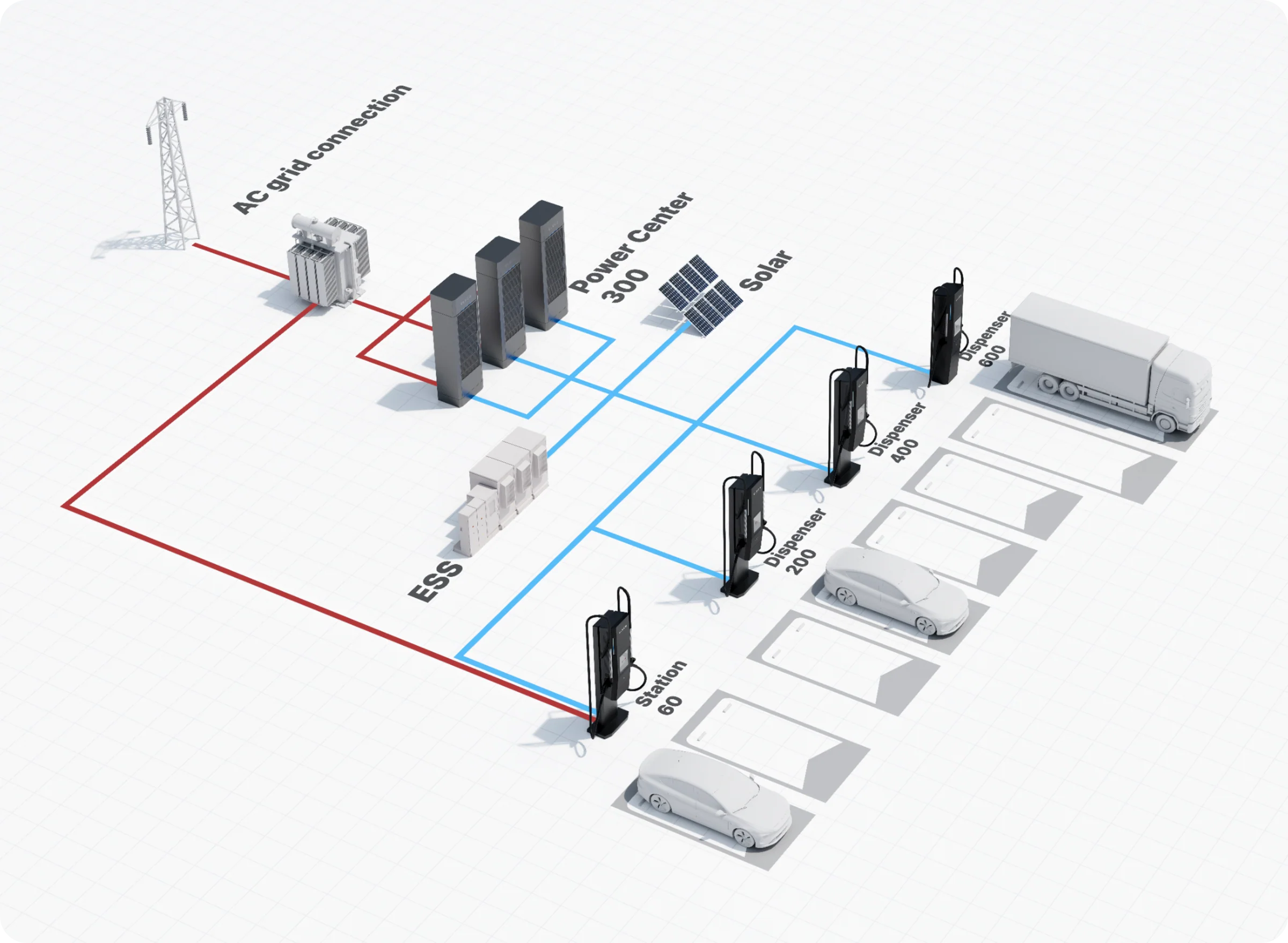 Boost efficiency by integrating multiple stations, solar, and ESS